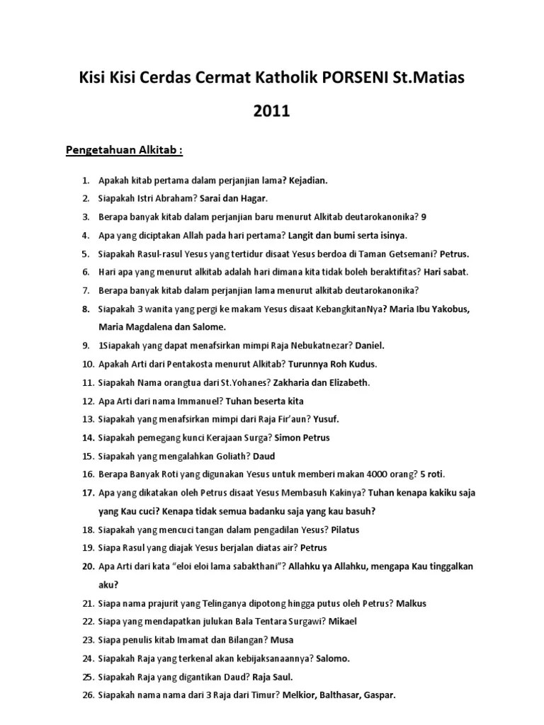 Contoh soal cerdas cermat agama islam tingkat sma . Soal pendidikan agama islam atau pai untuk kelas 1 sd kurikulum 2013 akan kami sajikan di halaman ini. Kumpulan contoh soal cerdas cermat pramuka beserta jawabannya 1. Kumpulan soal soal cerdas cermat bahasa inggris sma beserta kunci jawabannya sahabat sbi yang . Kerajaan hindu tertua di indonesia adalah kerajaan ?